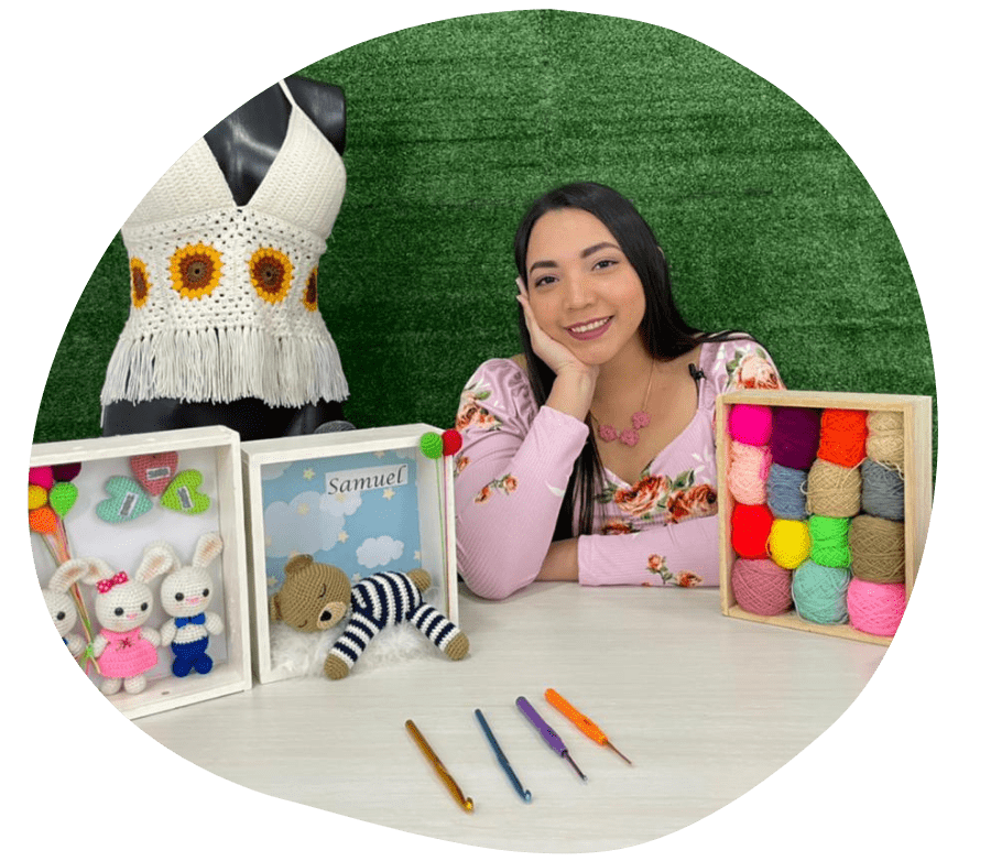 Empresaria, mentora y crochetera profesional, fundadora de uno de los programas de capacitación de tejidos a crochet más grande de habla hispana, con más de 5000 estudiantes en todo el mundo.
